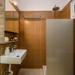 Geniet van het comfort van een badkamer in Ioli Ialysos Sea Apartment, dat met een haardroger en handdoeken is uitgerust. Er is ook een wasmachine.